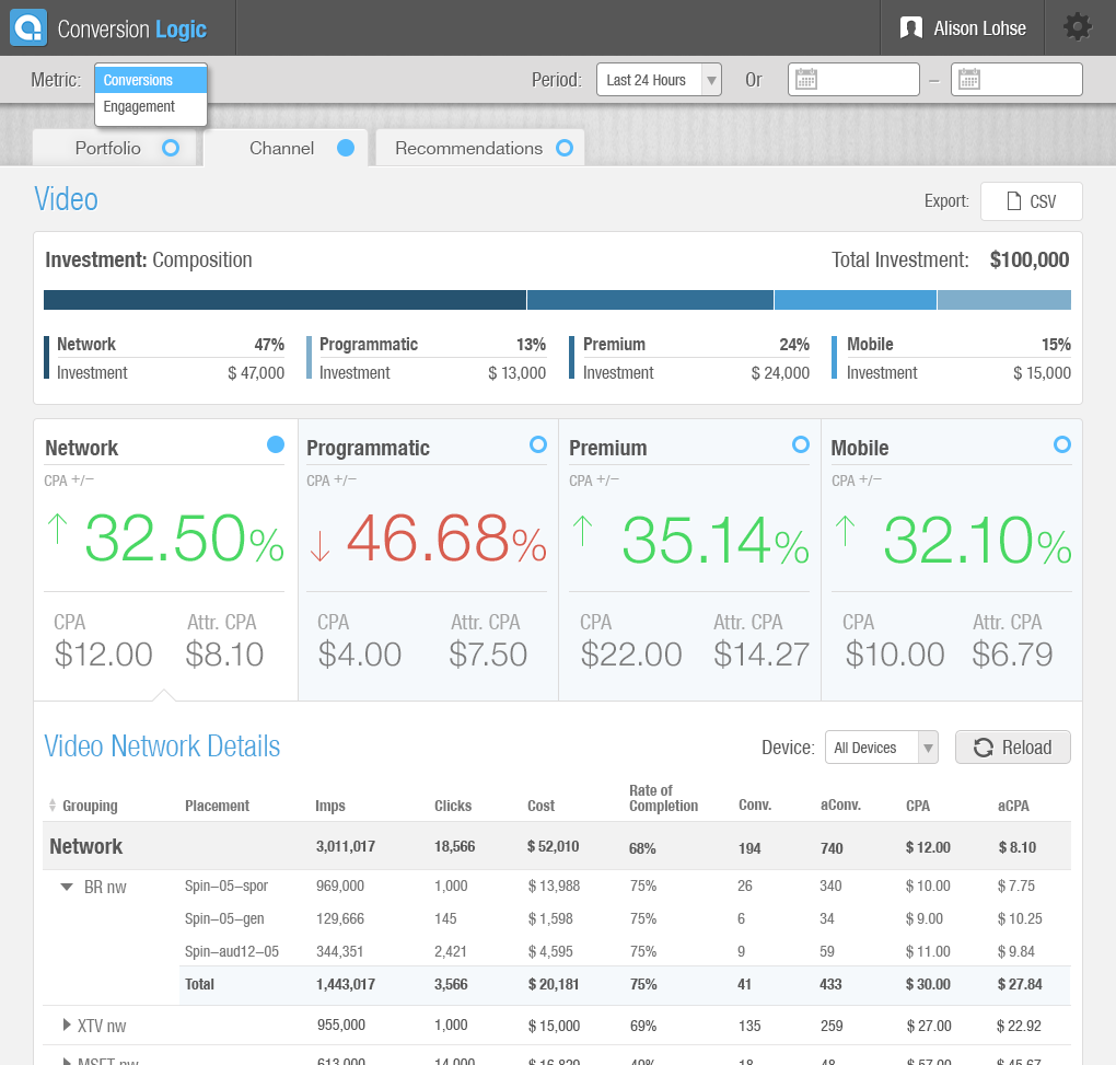 Testwuide: Conversion Logic is building a next-gen attribution platform with deep focus on cross-platform video. We are modeling stimulation data across all channels, measuring cross-channel influences, delivering timely actionable insights, and informing video performance and optimization.