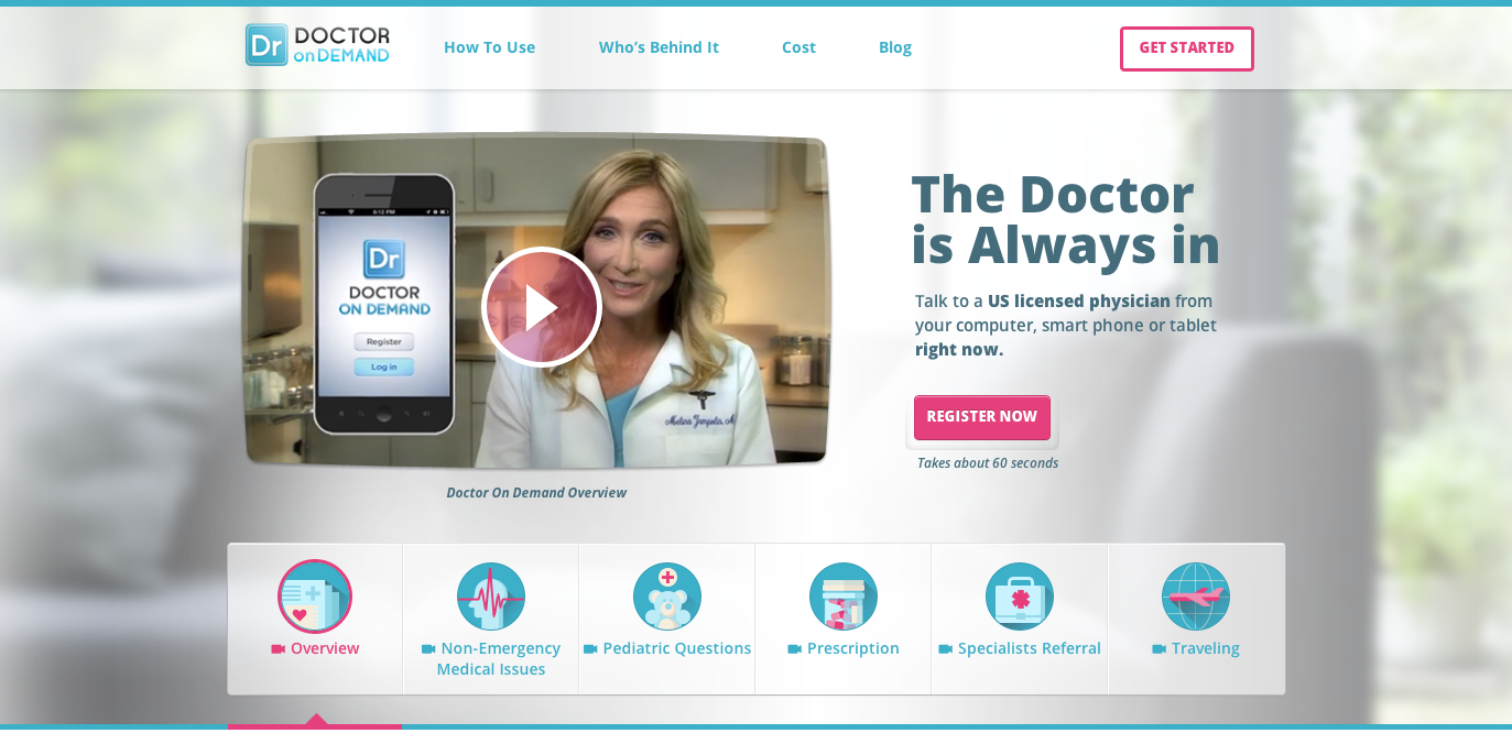 Jackson: Doctor on Demand is unique in that it is the first direct-to-consumer virtual medicine application. We are also differentiated in that we offer video visits with doctors via mobile devices—smart phones and tablets. Consumers can download the app directly from the iTunes or Google Play stores, sign up and be instantly connected to a licensed U.S. physician.