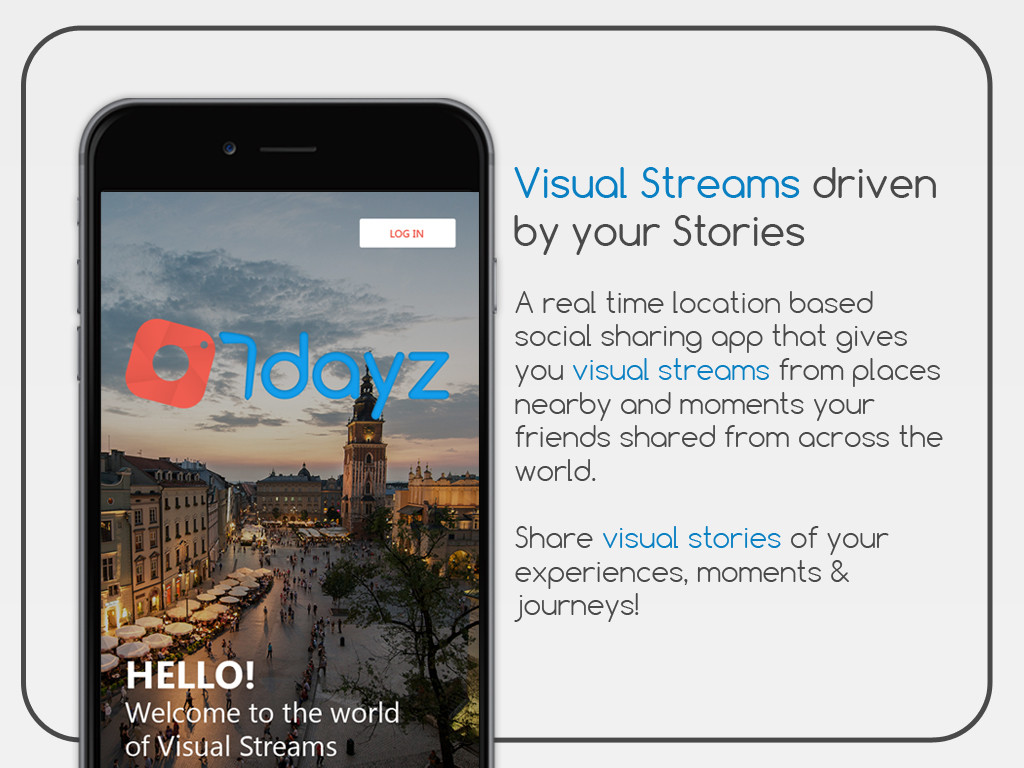 COMPANY: 7dayz ELEVATOR PITCH Share stories from places you go and moments you live! PRODUCT/SERVICE DESCRIPTION 7dayz is a real time...