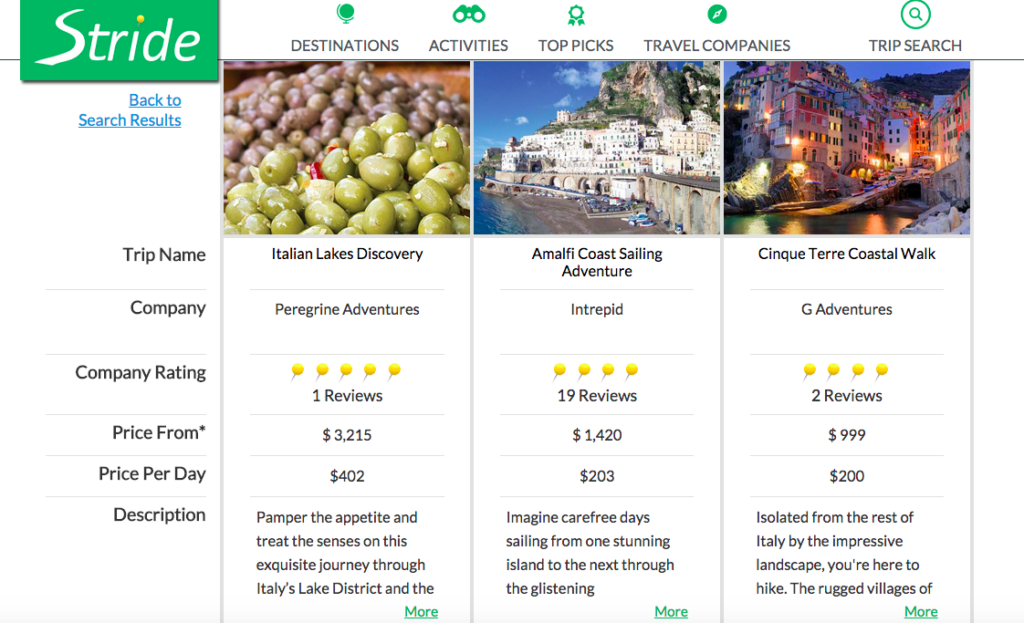 COMPANY: Stride Travel ELEVATOR PITCH Metasearch marketplace for guided trips and travel packages. PRODUCT/SERVICE DESCRIPTION Stride is...