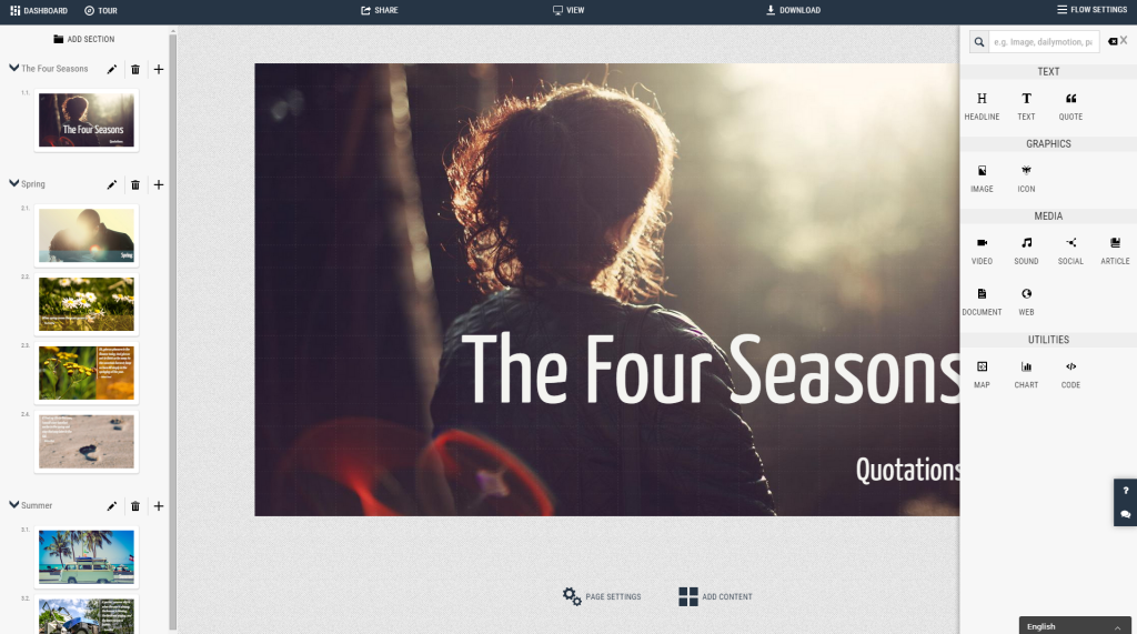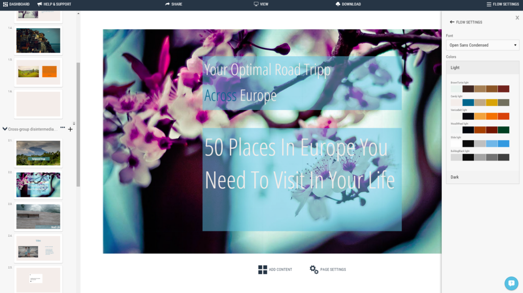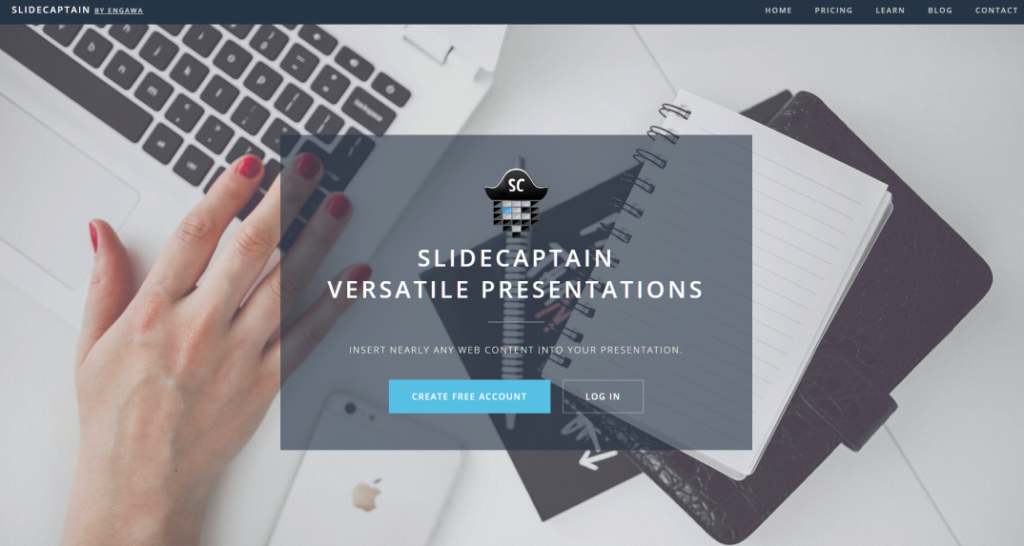 SlideCaptain is a modern cloud-based service to craft and show rich and interactive presentations. It offers a unique way to insert nearly any web content and helps people to build well structured content to always keep the perfect overview. Software developers can present their code by using the integrated code editor with support for more than 20 programming languages. Telling visually expressive stories is easy with the integrated image gallery, the in app photo editor and the beautiful well matching color themes.