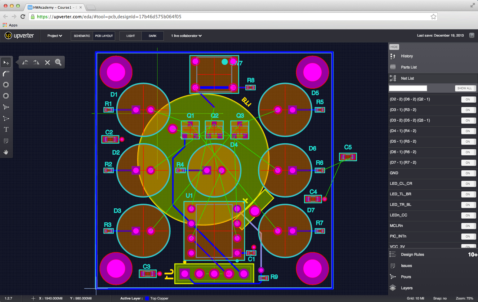 Homuth: Upverter makes a platform for doing engineering design and hardware manufacturing. Our platform runs in the cloud, and is designed for the modern, collaborative, and distributed way of working. You can use Upverter for every stage of hardware development—schematics, engineering drawings, PCB (printed circuit board) layouts, and simulations.